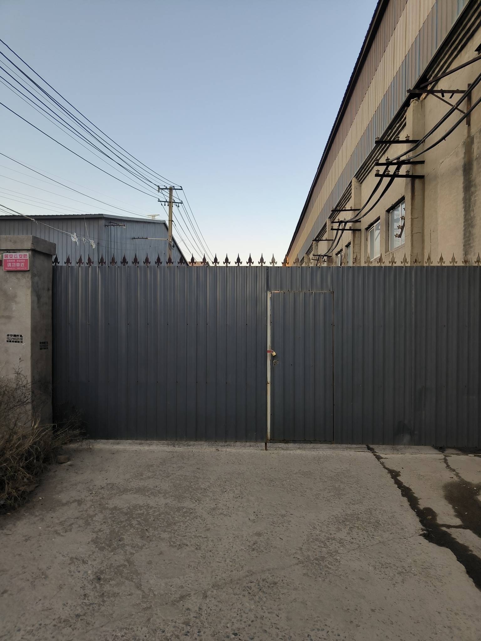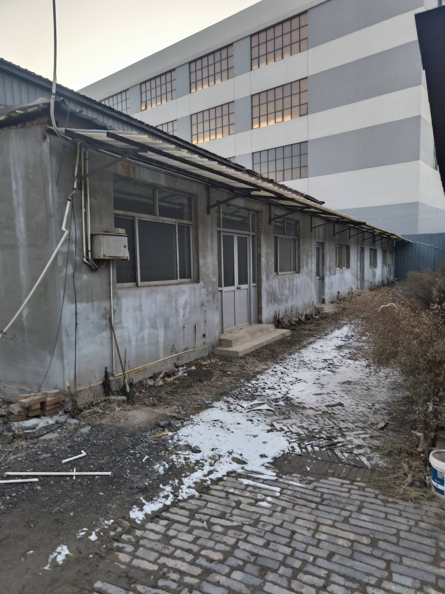 崔庄子北霸杨线道边出租6.3亩厂房小院,2个车间(面积5亩)1个配房450平,办公室及工人宿舍9间带厕所,有上下水,水泥地面,棚高6米
