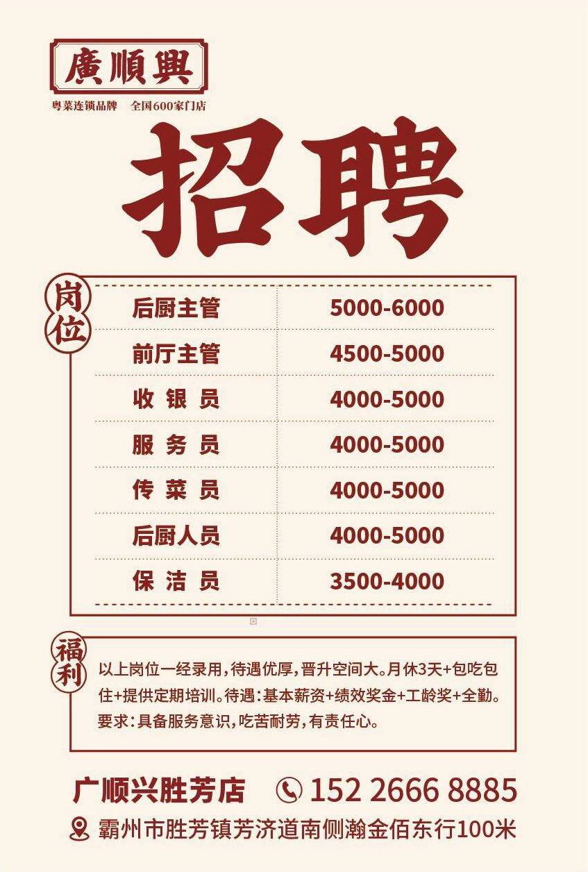 胜芳廣顺興招聘