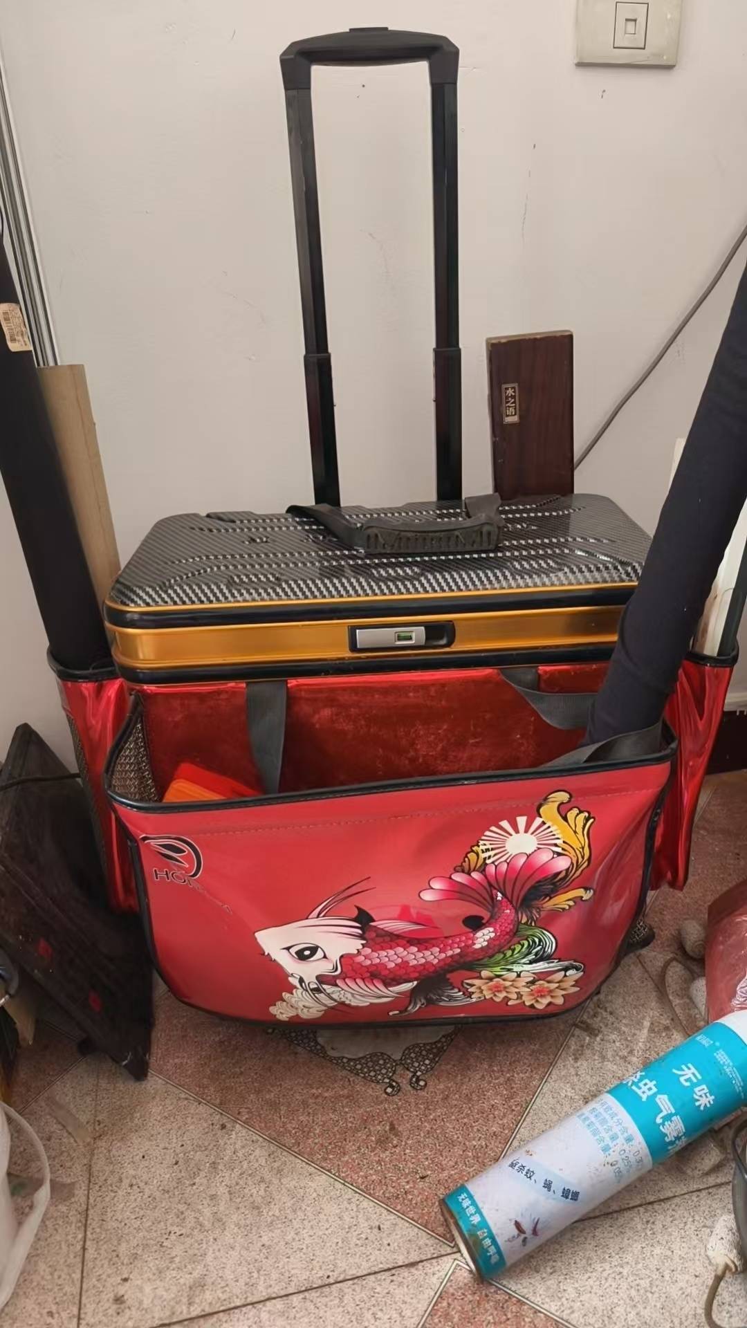 ºëÈÕµöÓãÀ¸ËÏ䣬»ðºìÉ«½õÀð¿î£¬´øÂÖ×Ó£¬Òƶ¯ºÜ·½±ã¡£¼Óºñ²ÄÖÊ£¬½áʵÄÍÓã¬ÈÝÁ¿´ó£¬ÄÜ