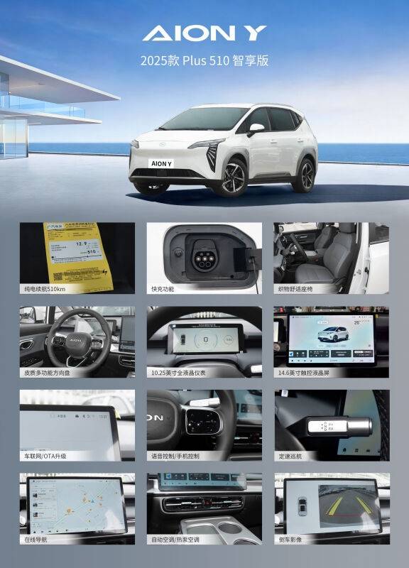 AION Y£¬¿í³¨ÊæÊÊ´¿µçSUV ¶¯¸ÐÔìÐÍ£¬ÊʺÏÄêÇá¿Í»§ÈºÌå 510km³¬³¤Ðøº½